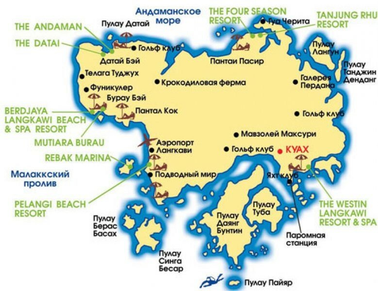 Чудный остров с тропическими лесами, окруженный множеством крошечных живописных островков (их 99, говорят), с великолепными белоснежными песчаными пляжами, покрытыми джунглями, горами, гостеприимными местными жителями, фантастической азиатской кухней, морепродуктами, тропическими фруктами, дьюти-фри магазинами, потрясным небесным мостом, повисшим над пропастью, любопытными лангурами, диковинными птицами и удивительно низкими ценами!