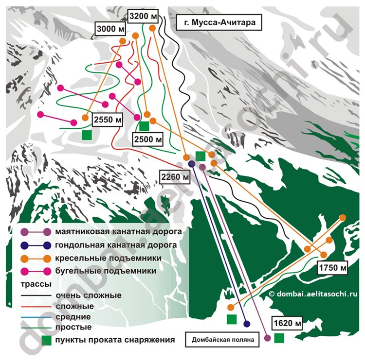 - При необходимости, прокат горнолыжного снаряжения: 800-1300 росс.руб./сутки.